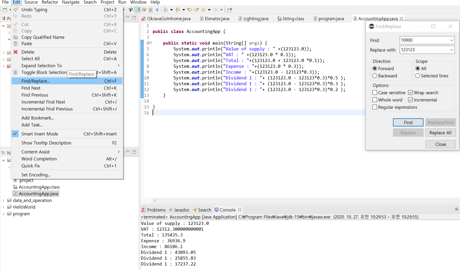 -> javac AccountingApp.java로 컴파일 -> java AccountingApp 20000.0 으로 Run