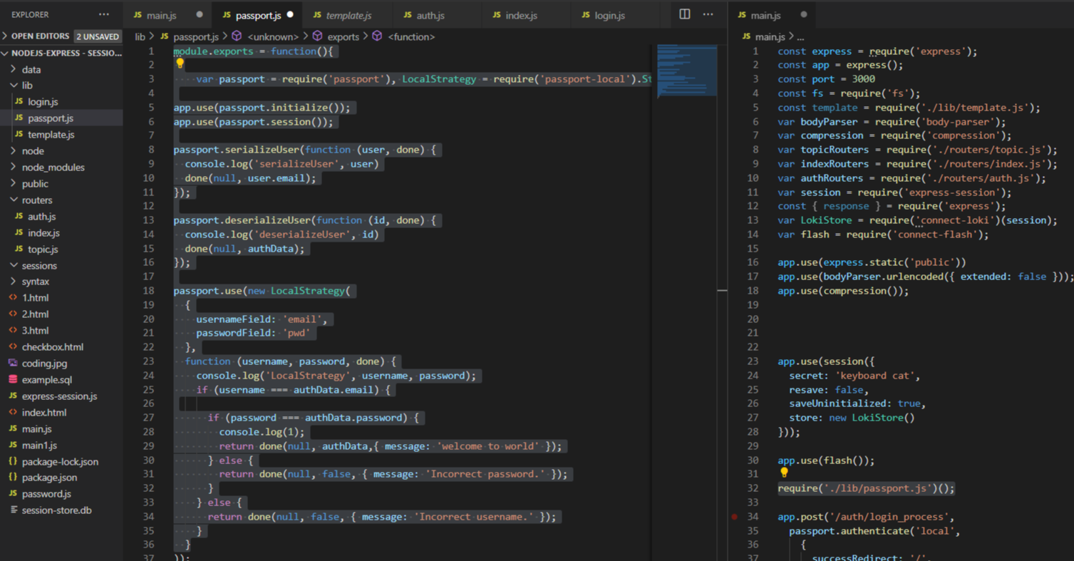 (1) - mian.js에서 이 후 작업인 app.post 내에서 passport를 사용하게 되는데 이는 lib/passport.js에 정의되어 있다.