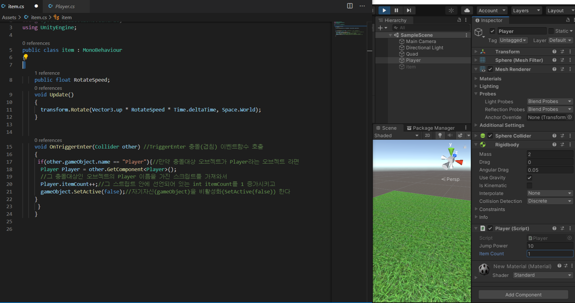 (2) 두번째 방법 - Player오브젝트안의 스크립트로 구현 --이걸로 하자