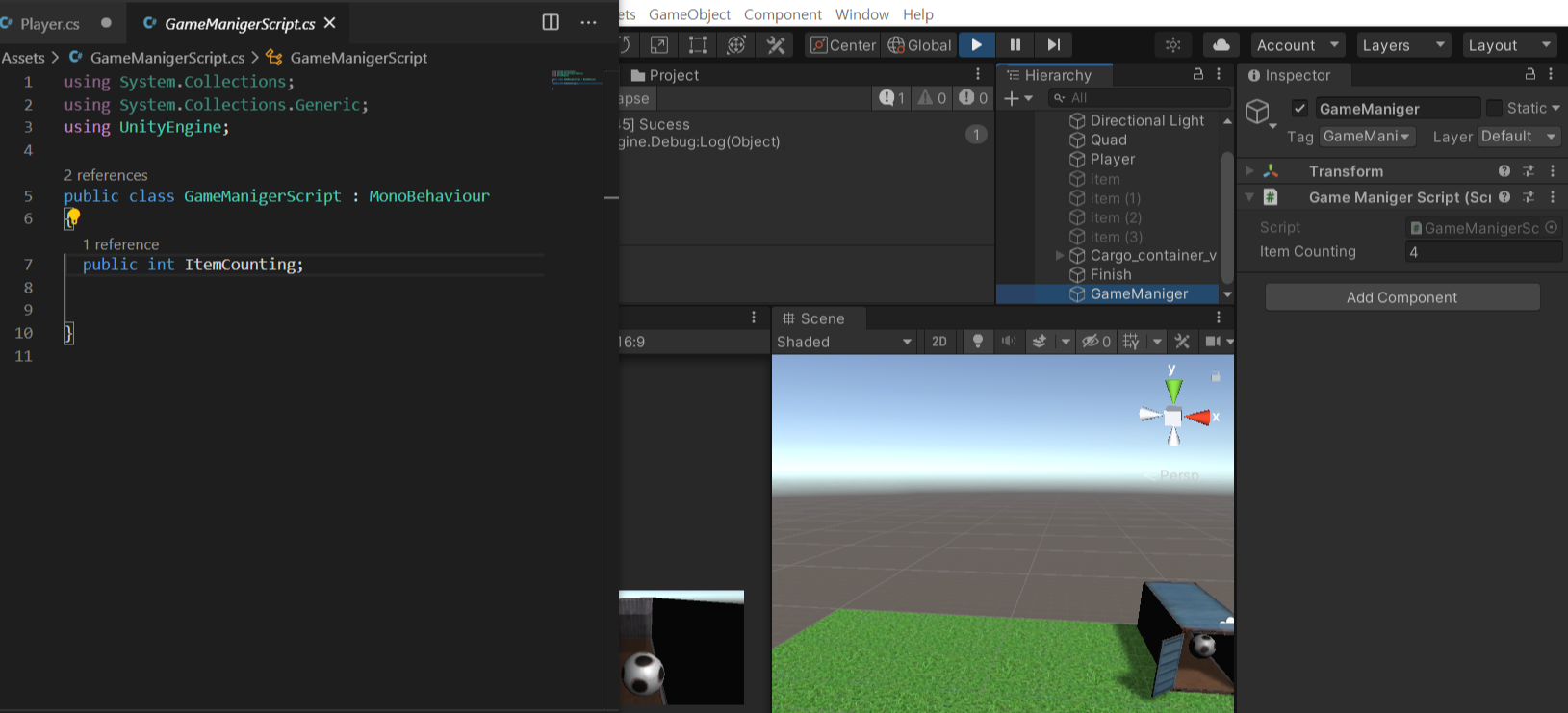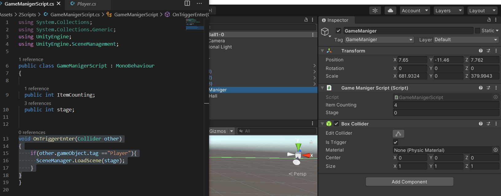 먼저 Player 스크립트 안으로 GameManiger의 스크립트안에 있는 변수 ItemCounting을 가져와야한다