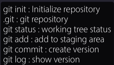 Working tree: 우리가 파일을 만들고 파일을 수정하고 할것인데 아직 버전으로 만들어지기 전단계 즉 우리가 수정한 파일들이 있는 곳