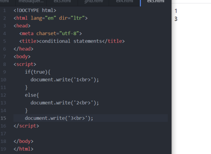 그렇기에 Boolean을 만드는 비교연산자들(==,===,<,>,<=,>=,!==,!=== 등)을 사용하여 if () 안의 내용을 삽입해야한다.