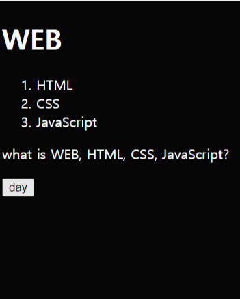 3.true라면 if절의 내용인 배경을 검정색으로, 글씨를 흰색으로하고 input의 value값을 day로 바꿔라