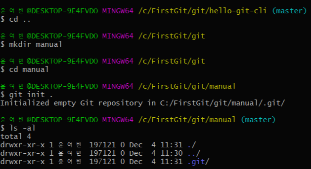 1. manual 이라는 폴더를 생성하고 해당 폴더를 Git으로 관리한다