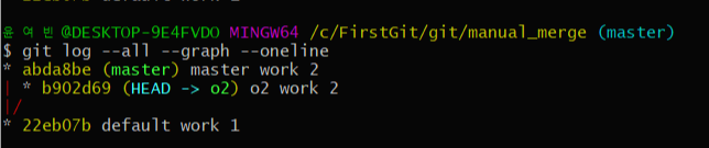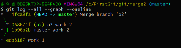 (4) - git merge o2 를 하면 현재 branch인 master branch의 master work 2 버전을 중심으로