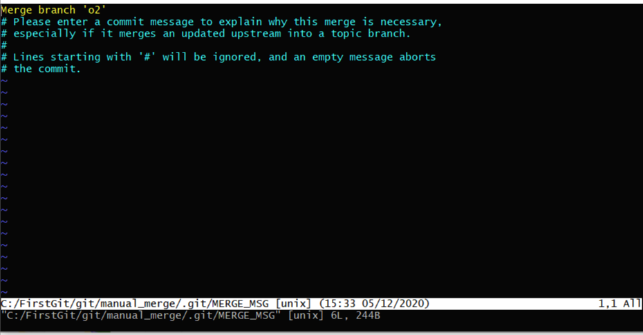 (3) - 왜 병합하는지 병합 내용을 Message로 써주고 ESC -> : -> wq 로 빠져나온다