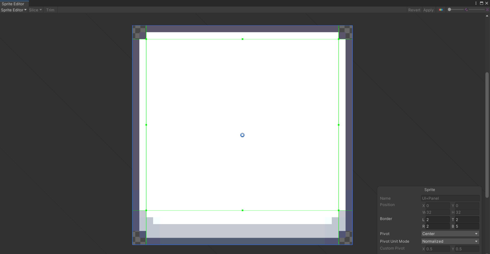 (4) - (3) 에 의해서 Border(초록선)의 바깥쪽 부분은 Image Type을 Sliced로 해도 이미지변화의 영향을 받지 않고