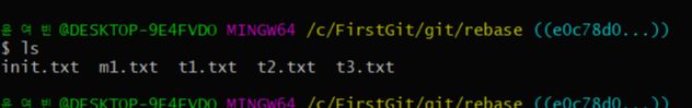 (3) - 여기서 rebase로 재구성된 e0c78d0 m1 버전은 t3의 버전에 이전 m1버전의 변화를 더한 버전이고