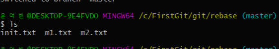 rebase로 만든 m2는 서로 완전히 같은 워킹카피(위의 예로는 init.txt | m1.txt | m2.txt | t1.txt | t2.txt | t3.txt)를 가지게 된다