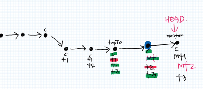 우리가 하고 싶은 일은 (master)m2 버전의 조상을 init버전이 아닌 (topic)t3 버전으로 바꾸고 싶다