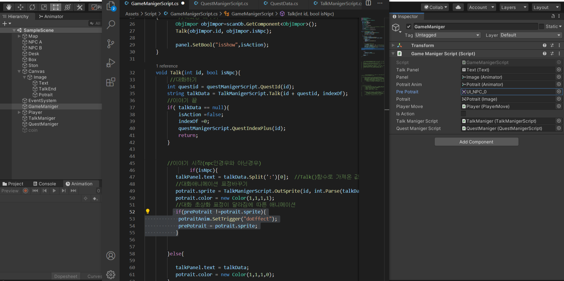 - GameManigerScript 대화에 따라 sprite가 변경되도록 구현한 지점에서
