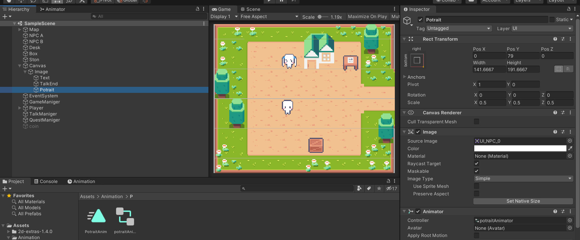 만약 이전 초상화인 prePotrait와 변경된 초상화인 potrait.sprite가 다르면 초상화애니메이션을 발동(setTrigger("doEffect"))시키고 prePotrait를 변경한 potrait.sprite로 바꾸어 준다 그래야 이후 초상화가 바뀔때마다