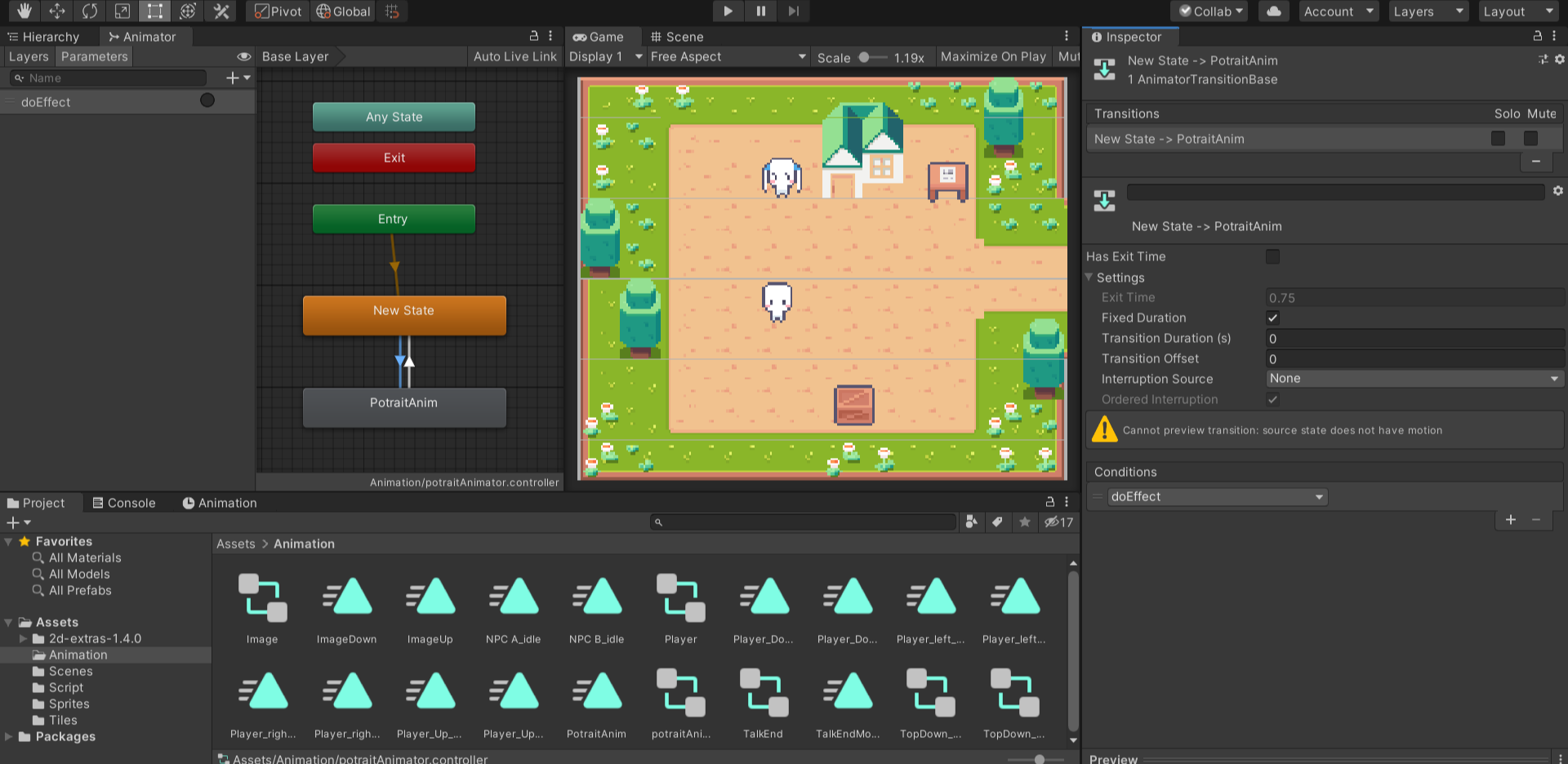 *이렇게 하면 doEffect Trigger에 의해 New State에서 PotraitAnim로 넘어와 애니메이션이 1번 실행되고