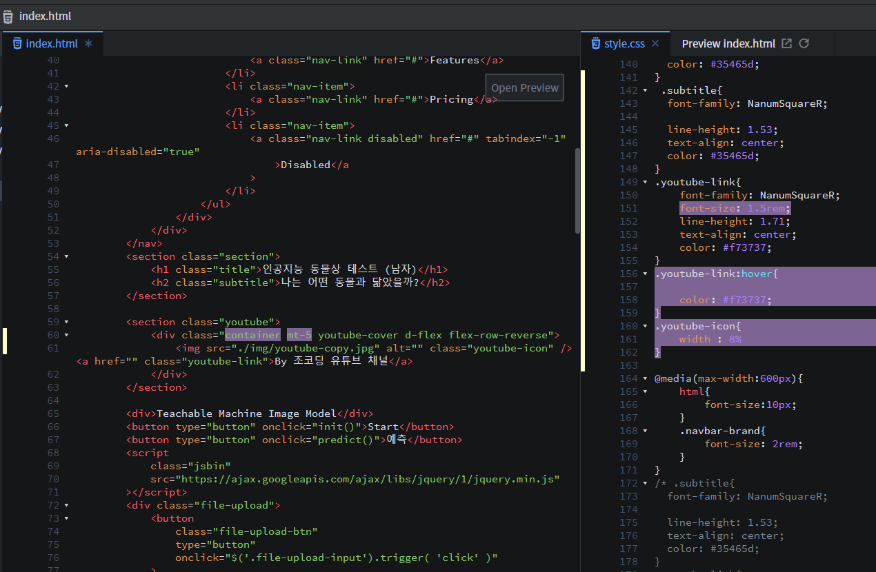 - youtube-cover class에 container 와 mt-5 BootStrap class를 주어 위치와 마진를 조정해준다