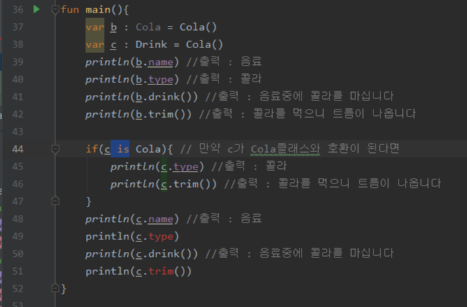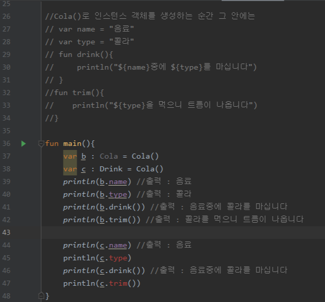 그리고 Cola클래스가 가지고있던 변수 type과 fun trim을 모두 사용할 수 있지만