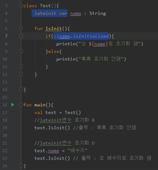 또한 lateinit 변수에 초기화를 하였는지 여부를 확인할 때는