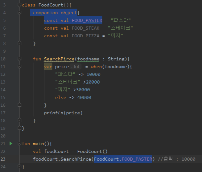 - 그럼 val FOOD_PASTER 처럼 변수를 쓰지 않는 이유는?