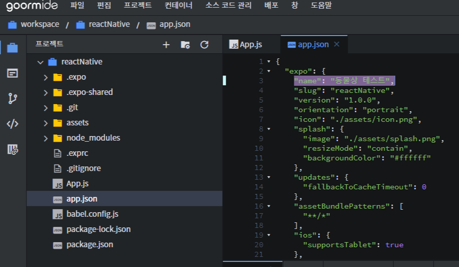 (2) expo icon의 사이즈는 1024x1024 , expo splash 사이즈는 1242x2436 가 적정사이즈이다