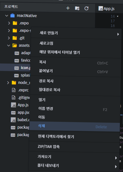 2)오류방지를 위해 기존에 있던 .expo폴더 삭제