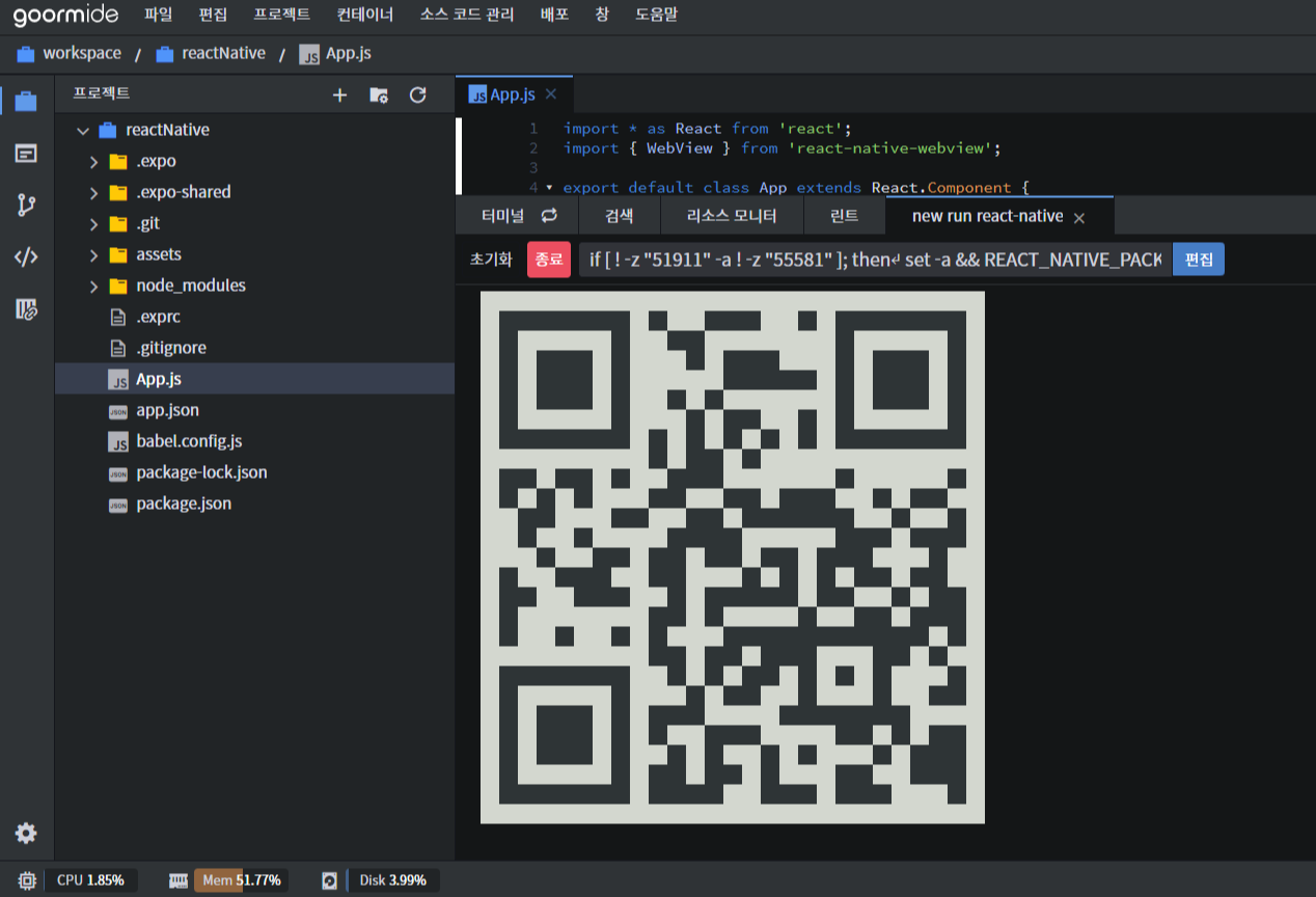 (6) - 이 qr코드를 핸드폰에서 expo app을 깔아서 스캔하면 내 WebApp이 나옴