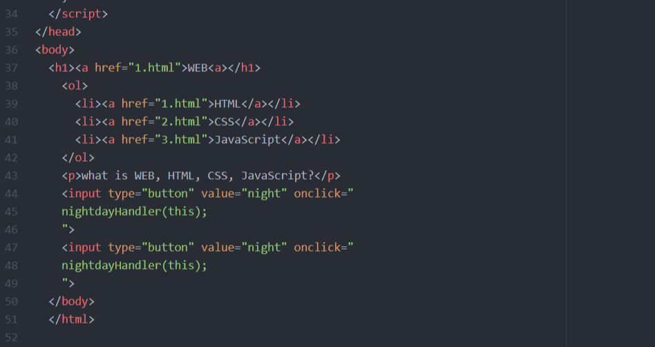 array&loop편에 있던 코드에서 onclick 내부에 있던 코드를 nightdayHandler라는 함수로 표현하여 코드를 추상화한 것