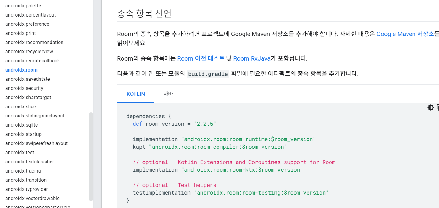 1.RoomDataBase 사용하기 위한 의존성 추가 및 싱크