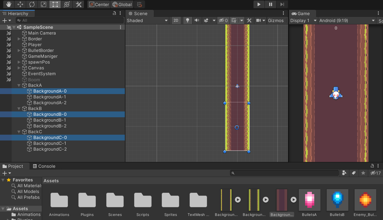 - BackGroundA-0, BackGroundB-0, BackGroundC-0이 한 세트이고 (0,-10,0)에 위치한다