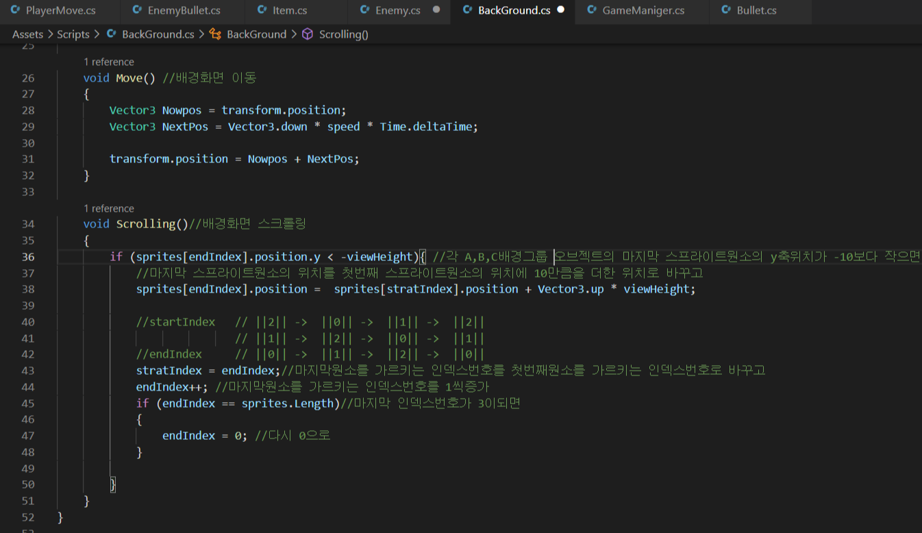 3. 배경스크롤링 구현(각 배경그룹마다 속도를 다르게하면 패럴렉스라고부름)