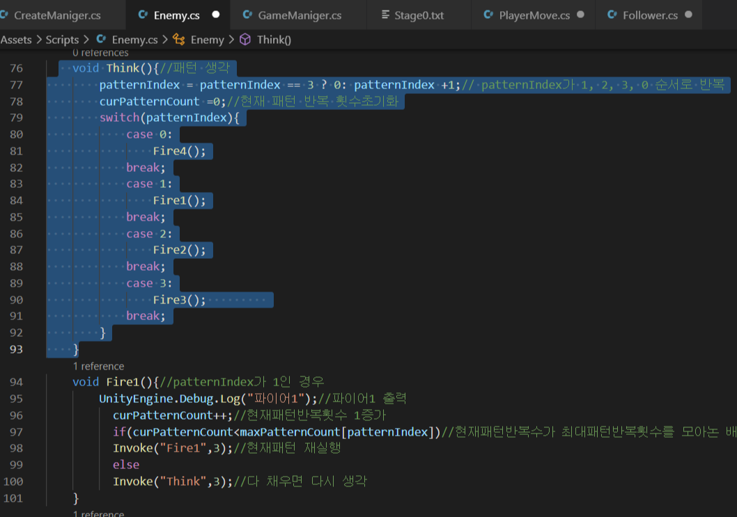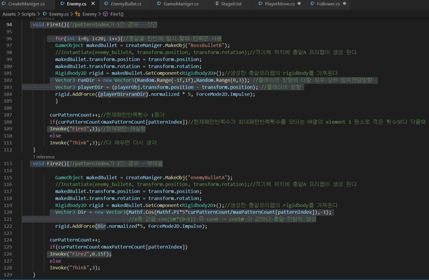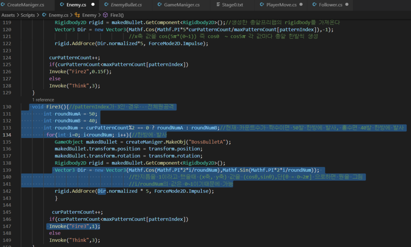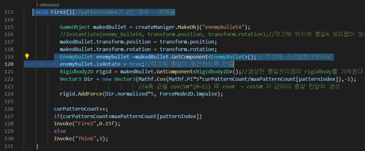 (5) - 부채꼴 패턴에서 보스총알 자동회전시키기