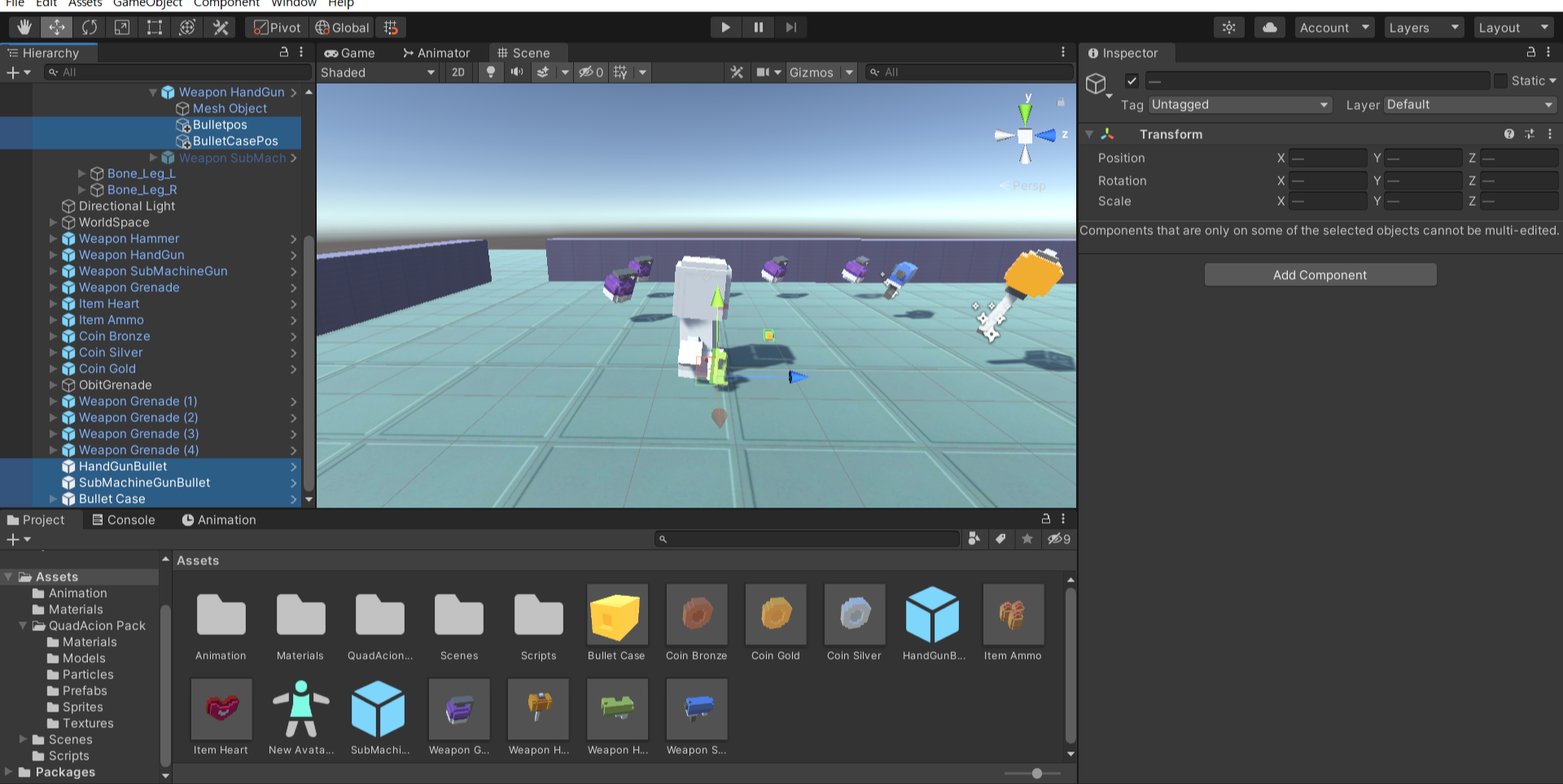#1. 원거리무기로 공격하기 - 총알 및 탄피 프리팹을 instate 및 destroy하는 방식으로 구현