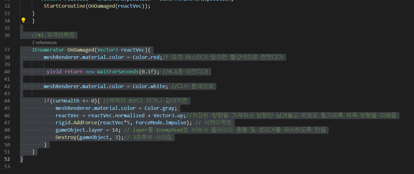 - 필요한 기능 : 총알 또는 망치를 맞았을때 잠깐 빨간색으로 변하고 현재피통이 깎임