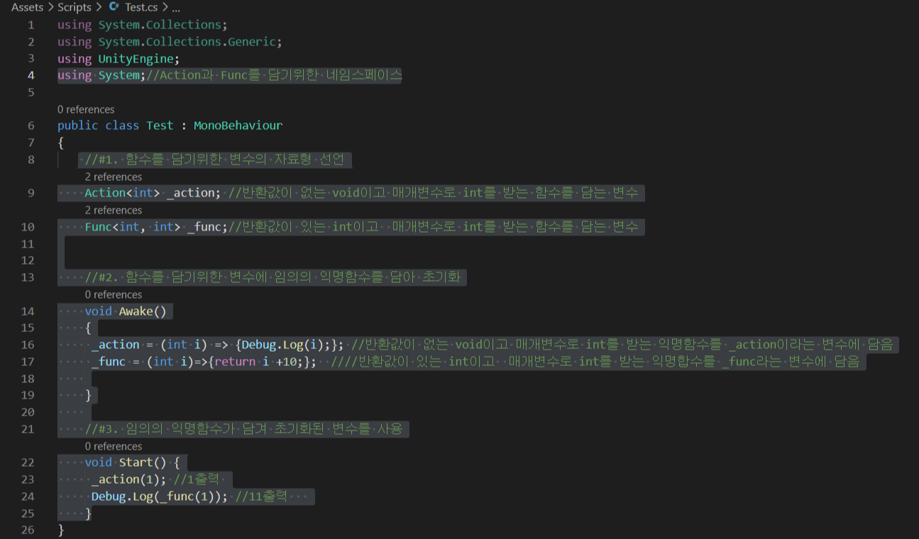 유니티로 배우는 C# 강좌 Part 19 - Action과 Func