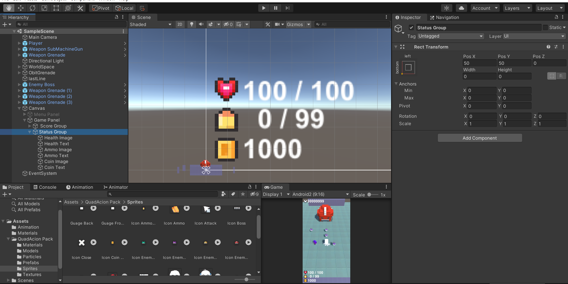 5. 게임판넬(상태 그룹, 스테이지 그룹, 적몬스터 그룹) 생성