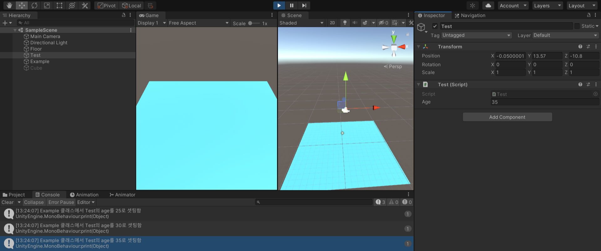 (근데 이렇게 하면 [SerializeField] public int Age)를 해도 인스펙터창에서 안보임...) 별로 쓸용도는 없을듯