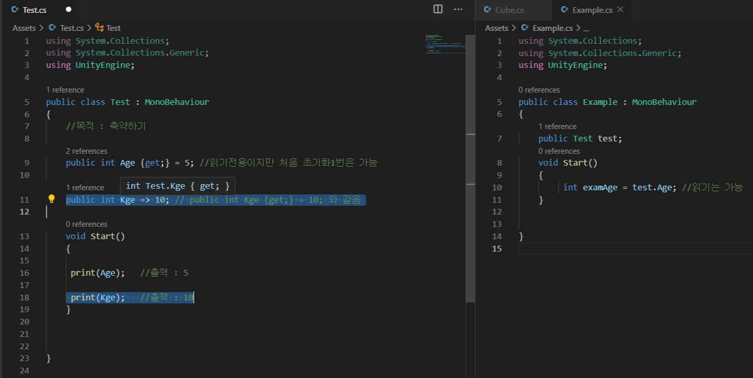 *아래처럼 축약하면 Test의 public int Age가 실제로는 private int Age변수 역할을 하게되어