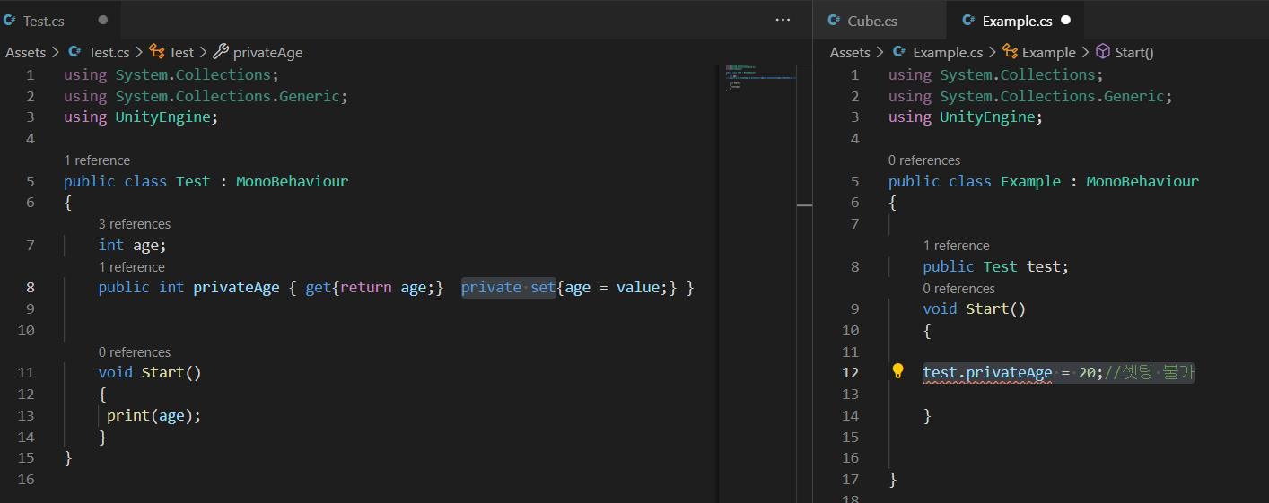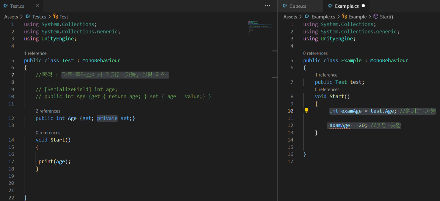(근데 이렇게 하면 [SerializeField] public int Age)를 해도 인스펙터창에서 안보임...) 별로 쓸용도는 없을듯