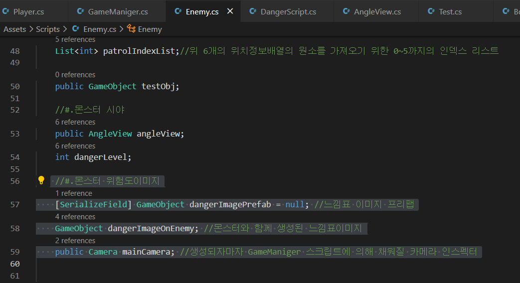| Unity3D_Quater - 몬스터 시야, 위험도이미지, 체력바 적용 (0) | 2021.04.12 |