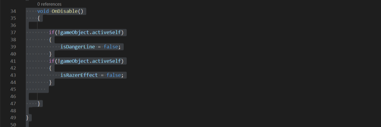 - Player 스크립트의 OnTriggerExit()에서는 위 레이저오브젝트에서 벗어나면 is damaged를 false로 하고