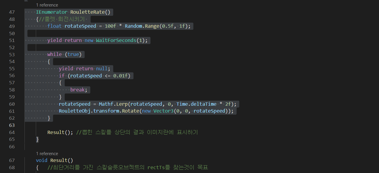 - 스킬슬롯에 스킬이미지를 랜덤하게 다 채운 후 룰렛을 회전시킴