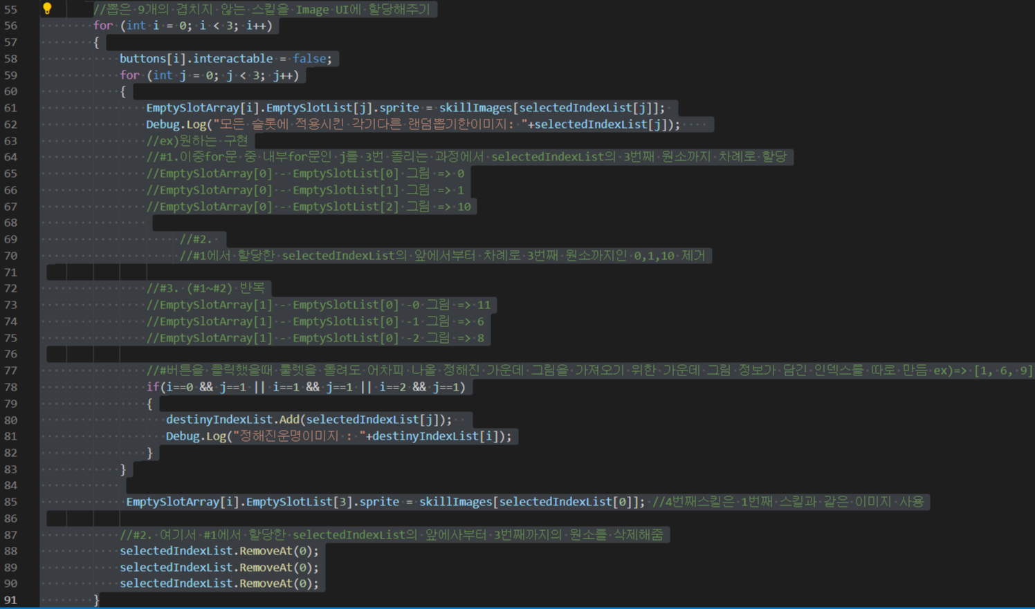 - 선택된 스킬이미지가 담길 ResultSkill 이미지 오브젝트까지 생성