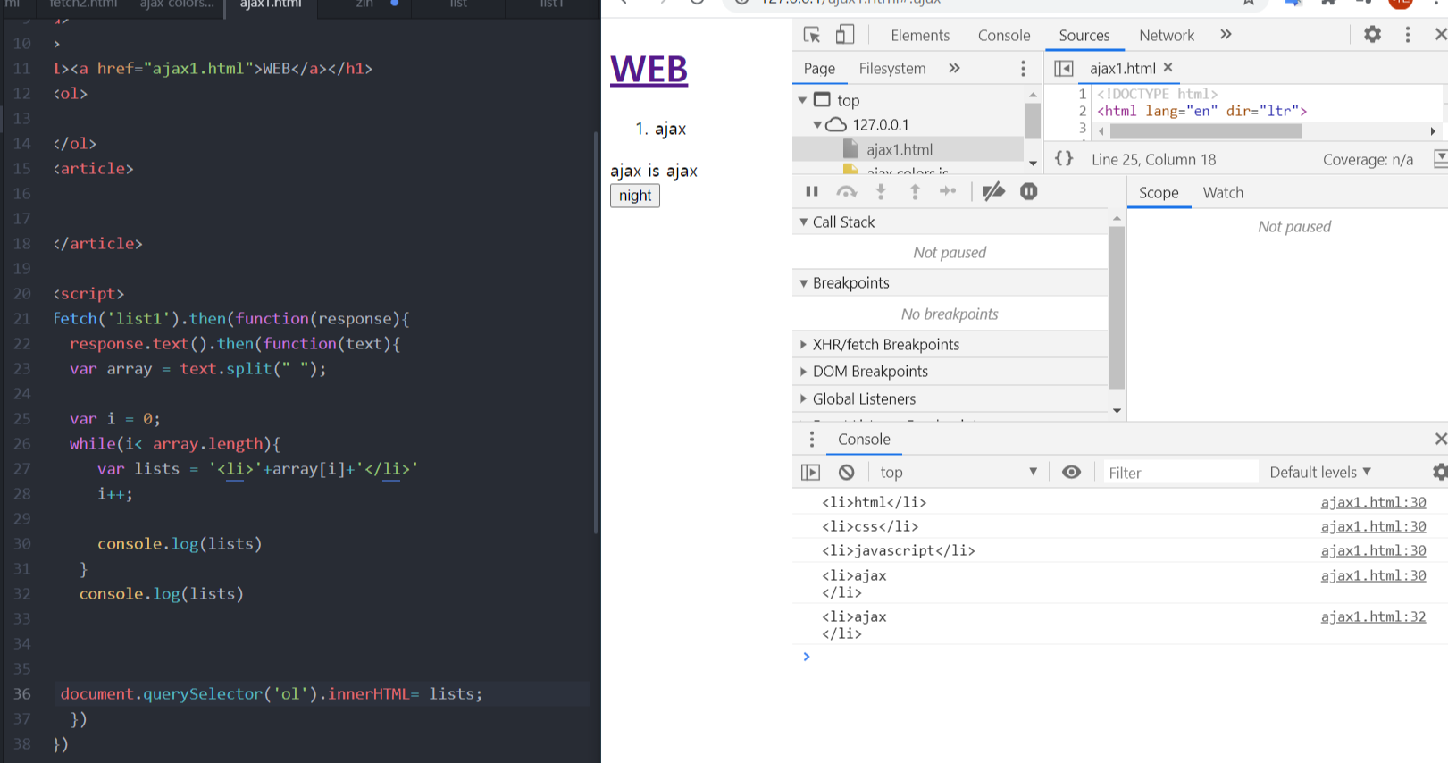 6. loop문을 돌릴때마다 <li><a href="array[i]" onclick="fetchPage('array[i]')">array[i]</a></li>