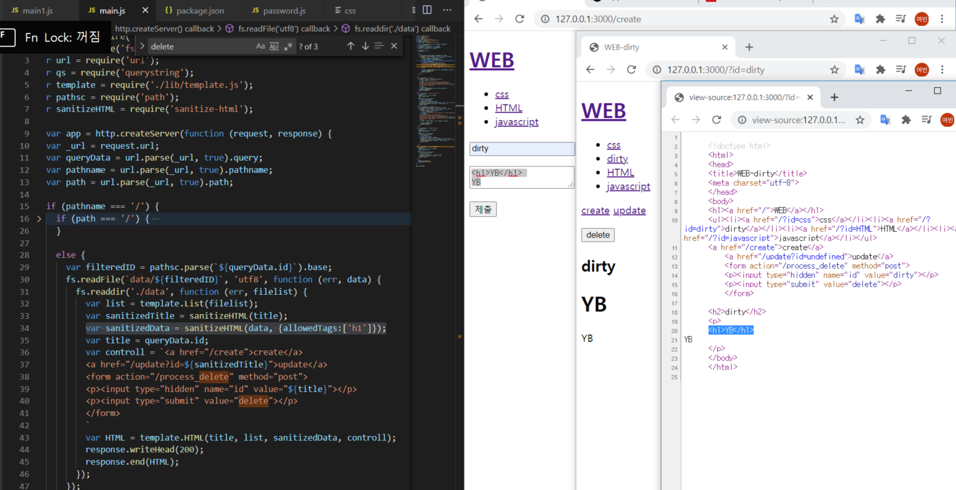 var sanitiziedData = sanitizeHTML(data, {allowedTags:['h1']}); 위로 올린다