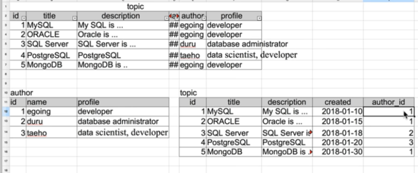 먼저 결합고리를 찾자 topic table의 author_id값과 author table의 id값을 결합하자