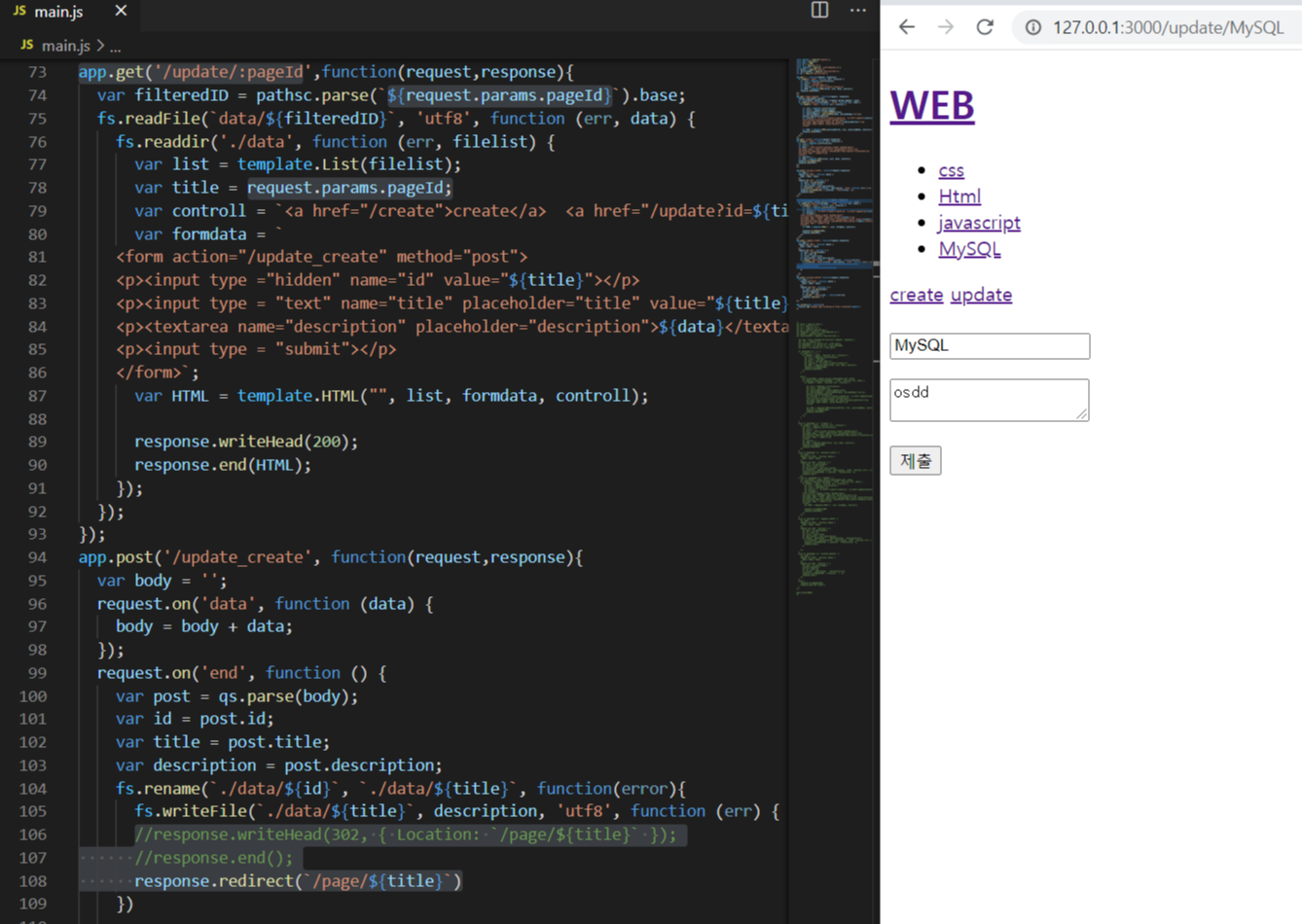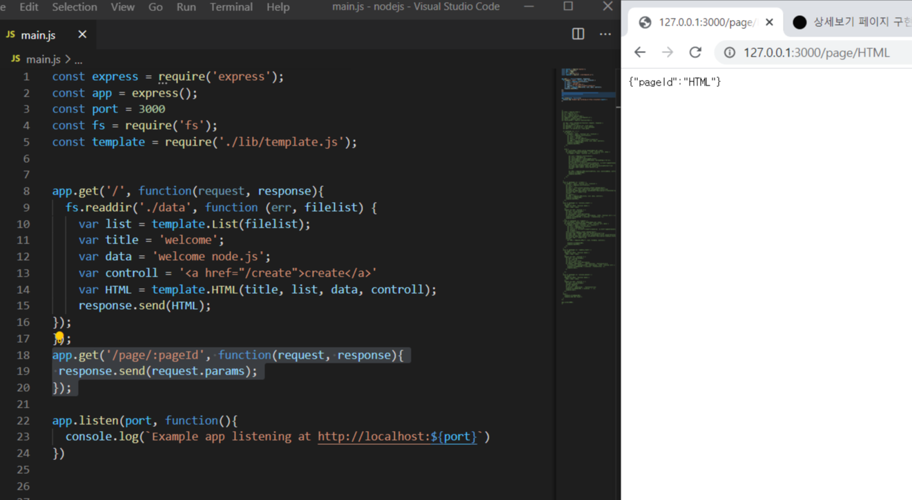app.get의 두번째 인자인 pageId라는 속성의 이름을 가진 값으로써 HTML을 추출할 수 있게 되는 것이다