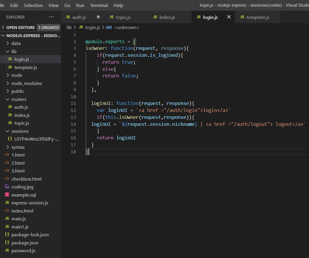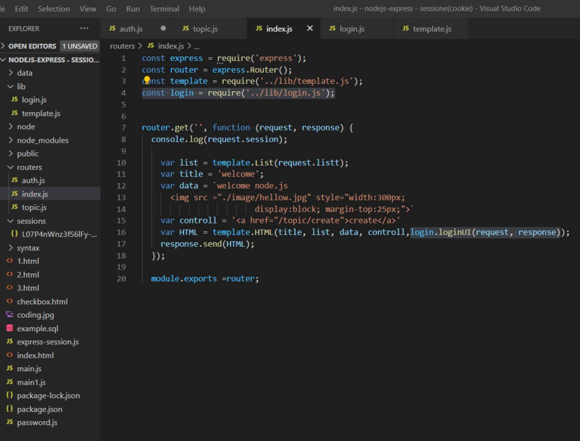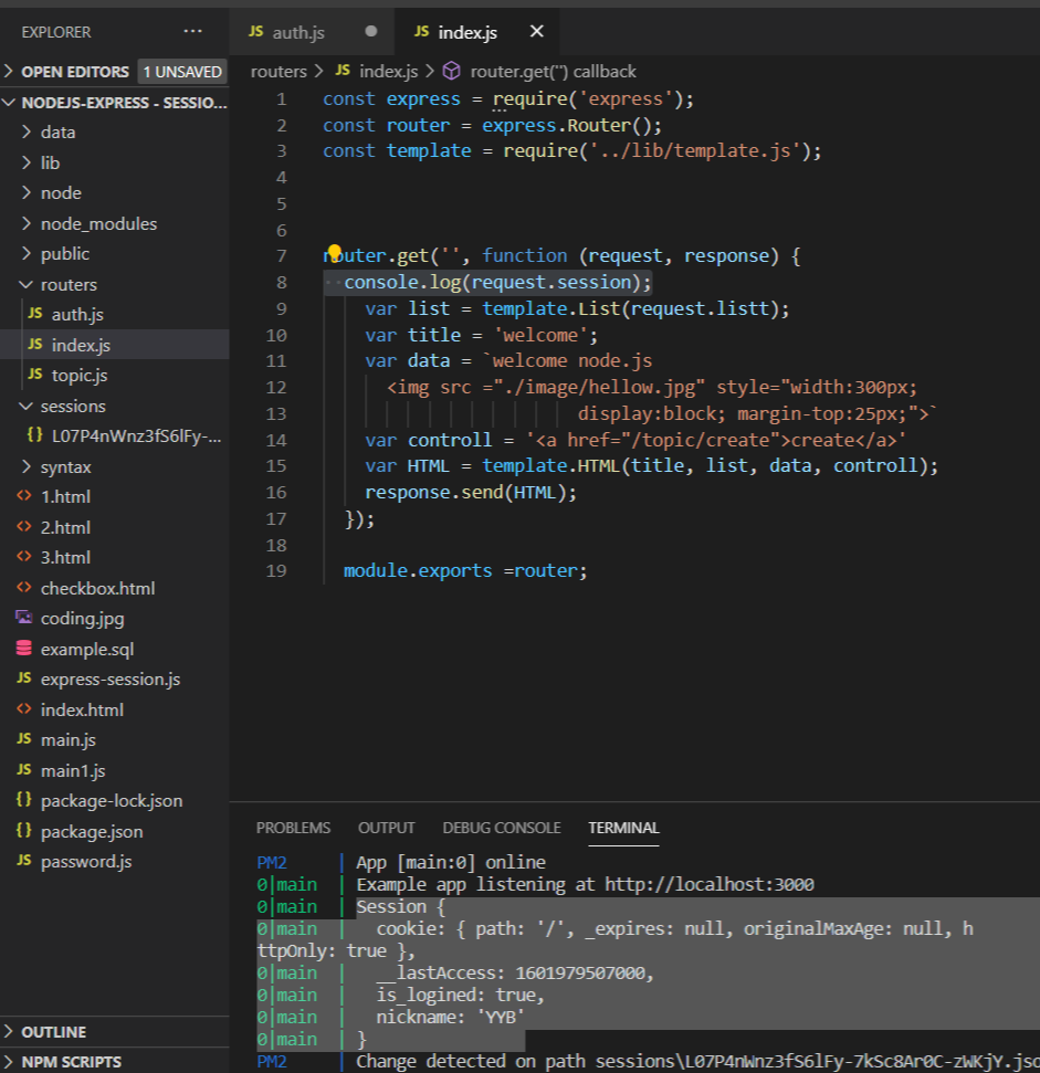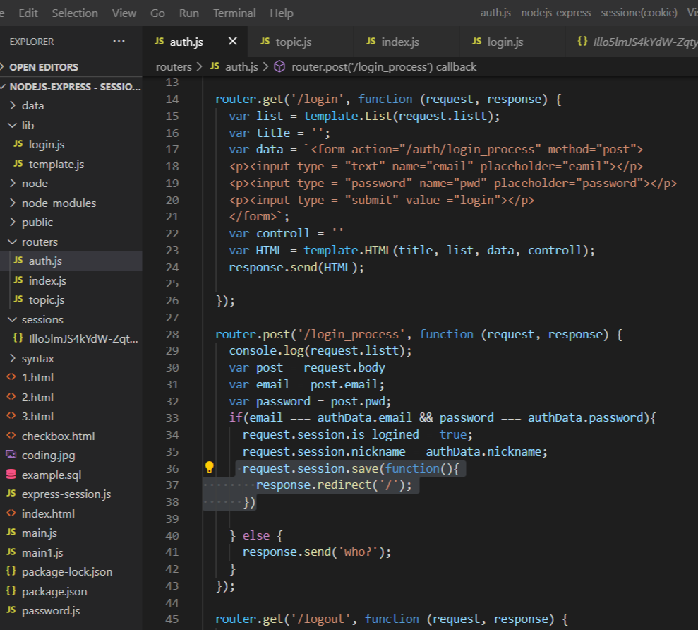 (1) 로그인 성공여부 체크하기 : console.log(request.session)를 해보면 4번에서 생성된 파일의