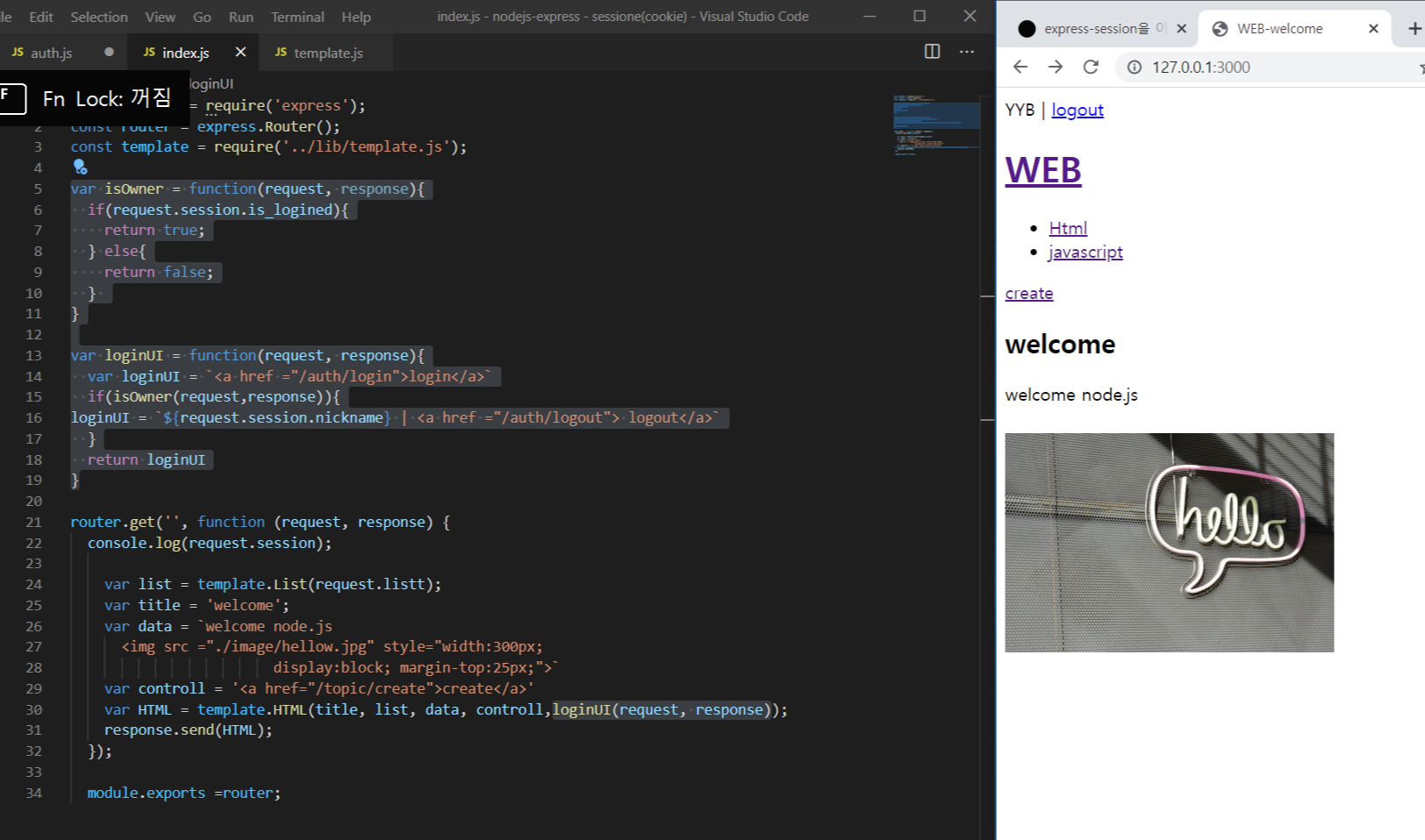 (2)if문으로 세션을 이용하여 로그인여부, 로그인UI 에 관한 코드 작성 및 함수화