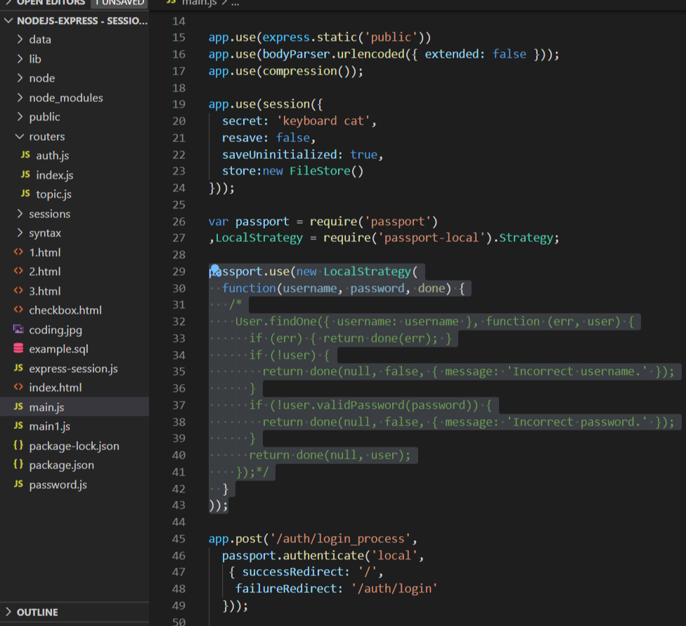 이 부분을 passport 체계로 바꿔줘야한다 따라서 위 코드는 주석처리 하고