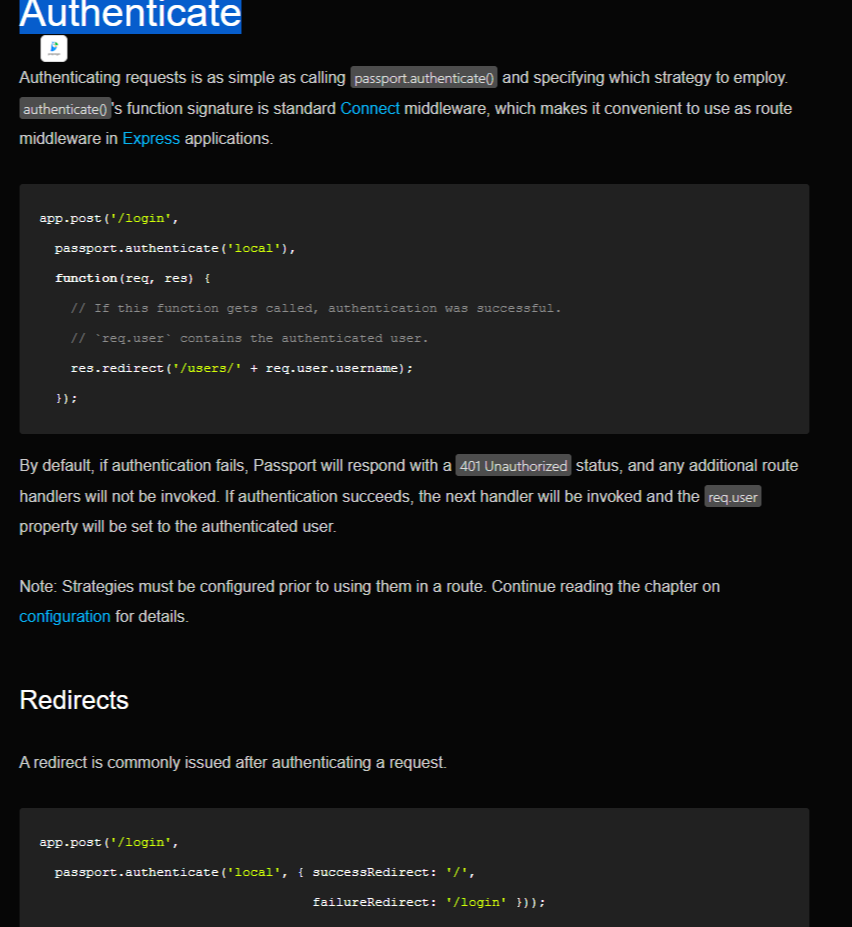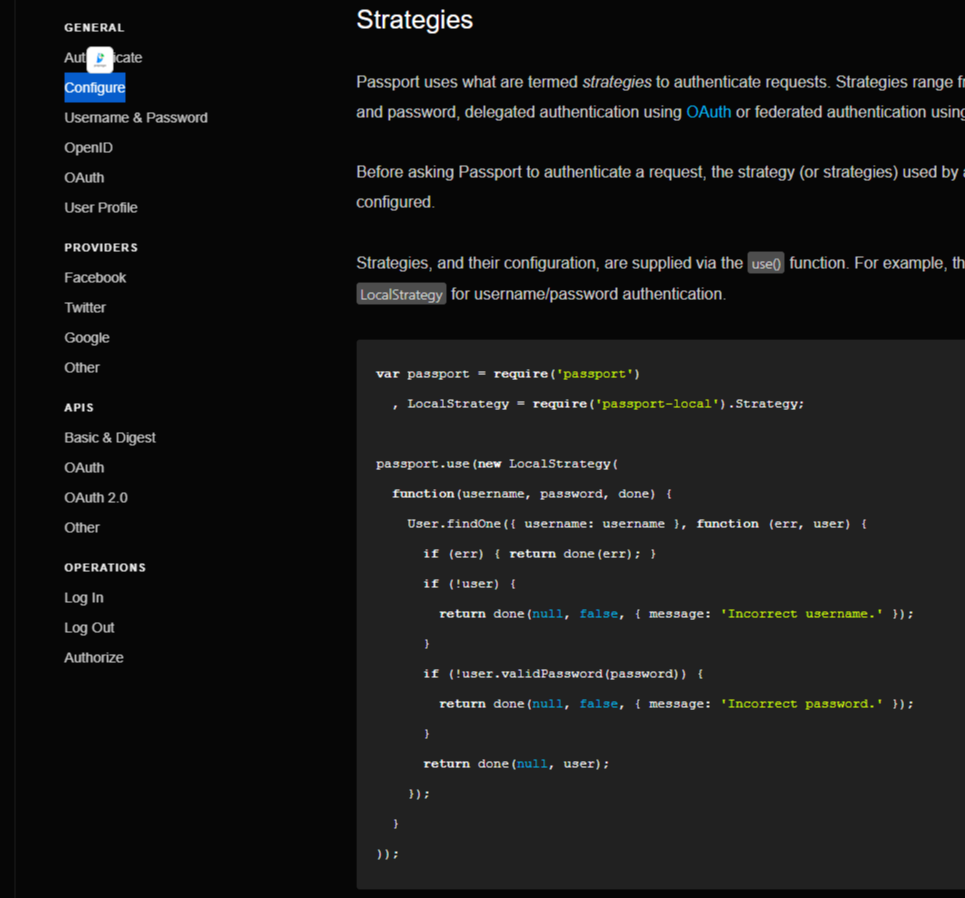 제공하는 API 가 그것을 대신한다 'local'은 passport의 여러가지 전략중에 username&password