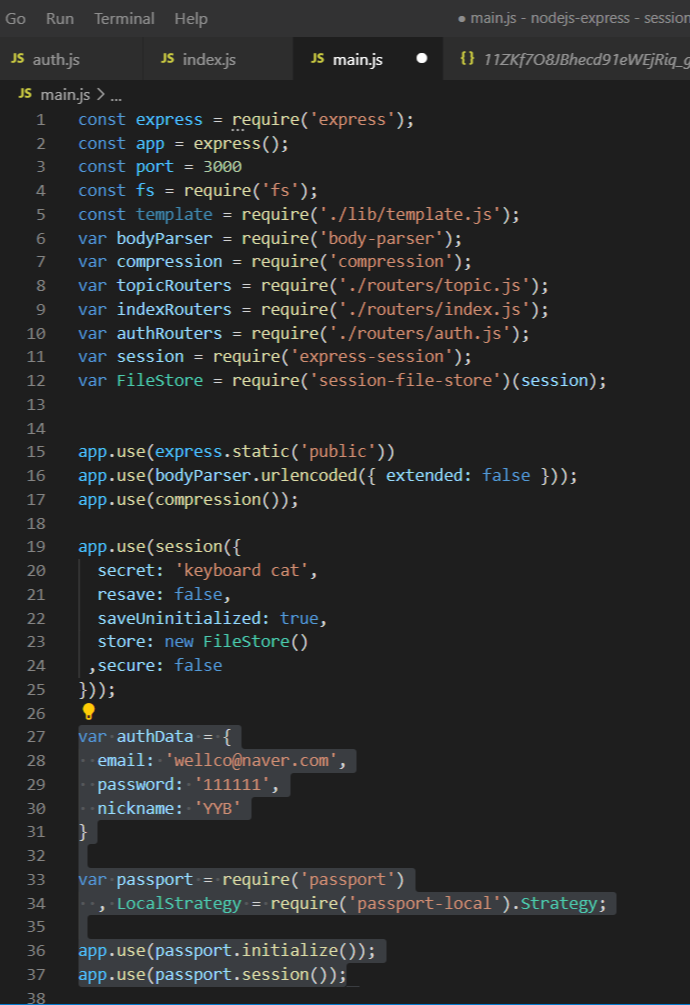 passport는 session을 기반으로 실행되기 때문에 app.use(passport.session());으로 이를 사용