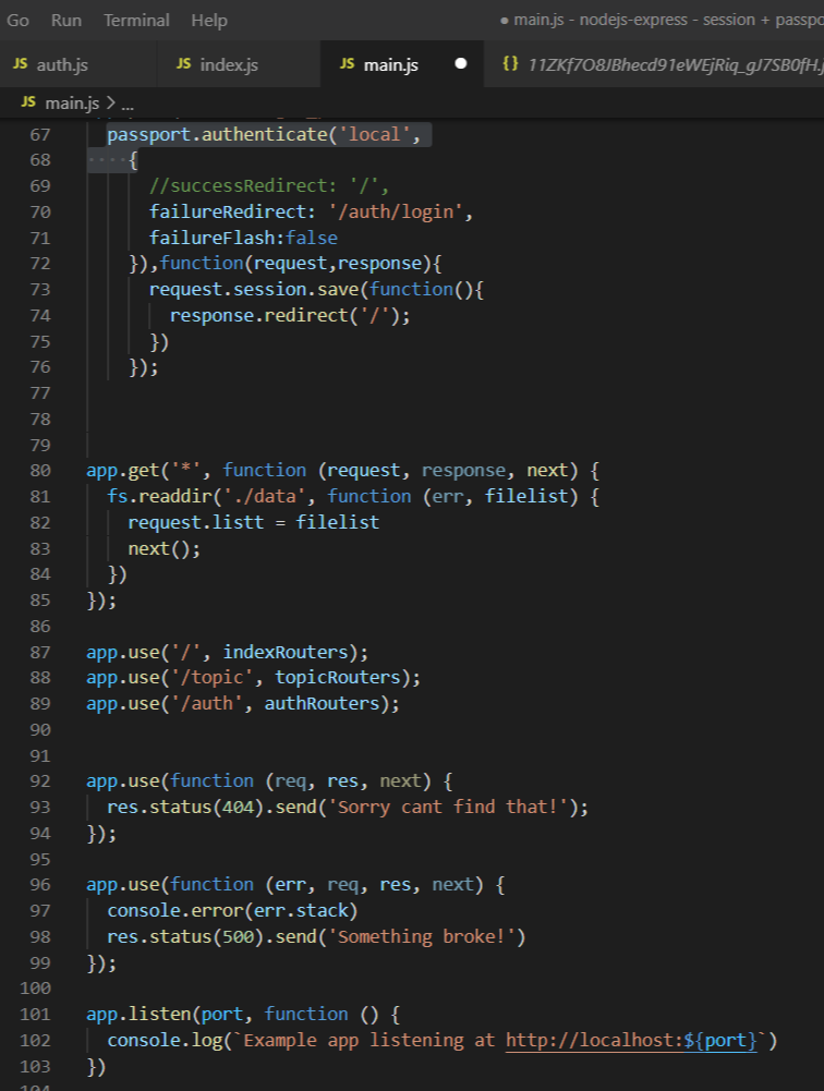 4.passport가 내부적으로 session을 이용할때는 무엇을 써야하는지 passportjs.org에서 검색해보면